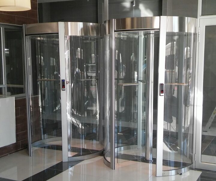 De fraaie opbouw van deze draaideur, door de combinatie van RVS en gehard glas, wordt gecombineerd met een oerdegelijke en zeer betrouwbare en hufterproof mechanisch vergrendelingsmechanisme.