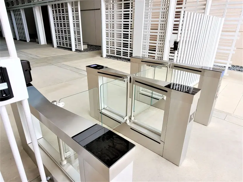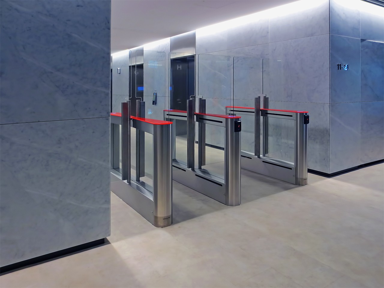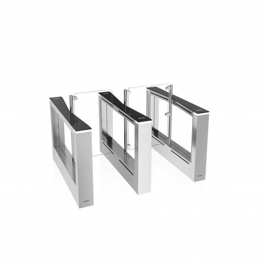 De EasyGate SPT is heavy-duty en uitgerust in RVS en gehard glas. Deze speed-gate (zoals deze personensluizen ook wel eens worden genoemd) kan worden uitgerust met diverse opties als bijvoorbeeld een gecombineerde module voor het inbouwen van een proximity paslezer in combinatie met een led-indicatie boven in de behuizing.