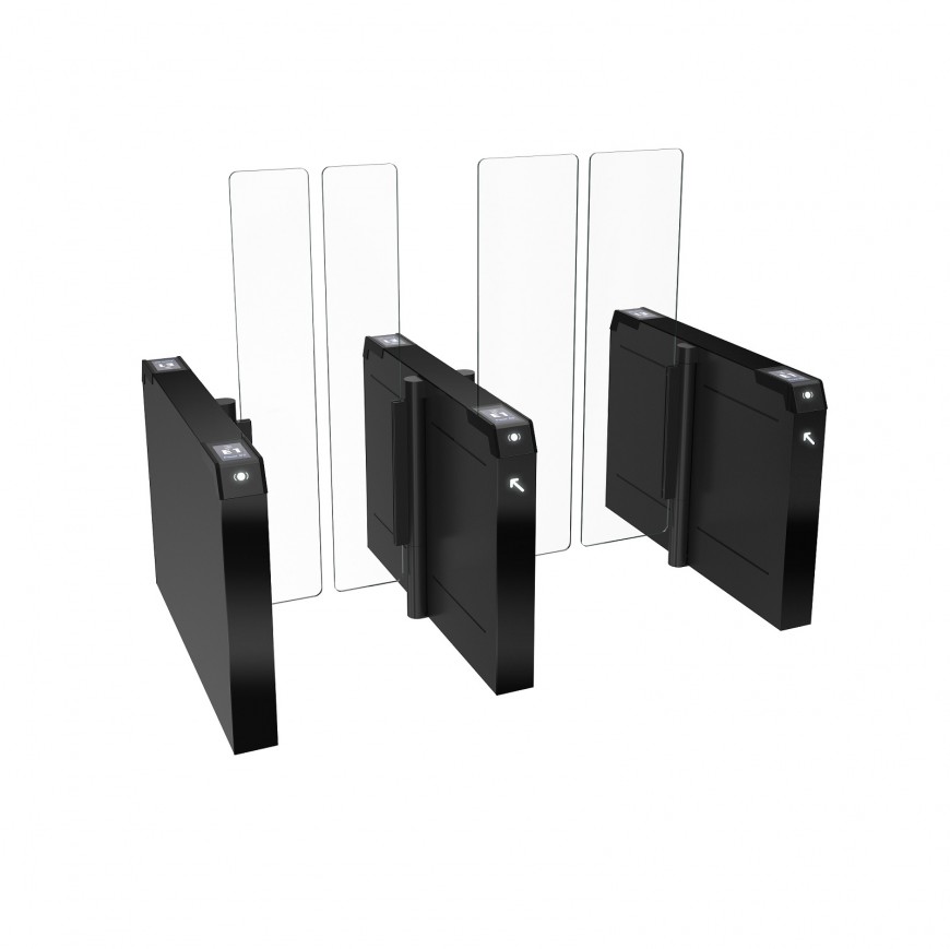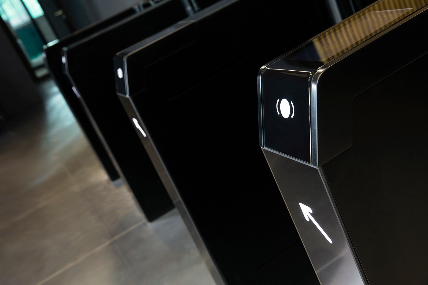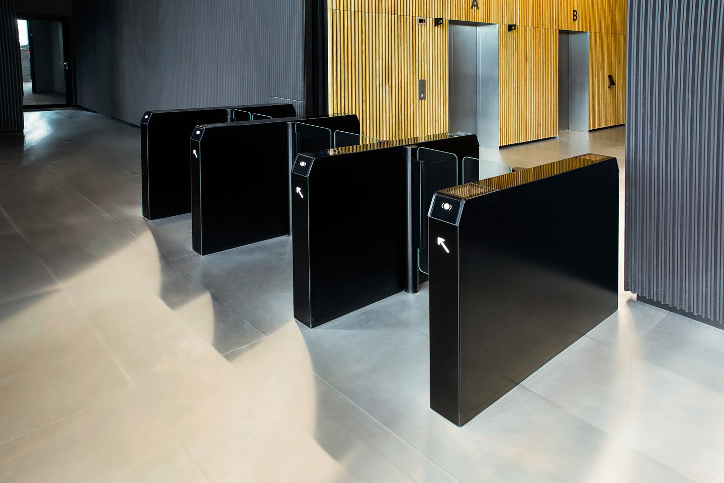 Ultra moderne personensluis. Deze EasyGate heeft niet alleen een strakke uitstraling maar is ook voorzien van een geïntegreerde liftsturing.