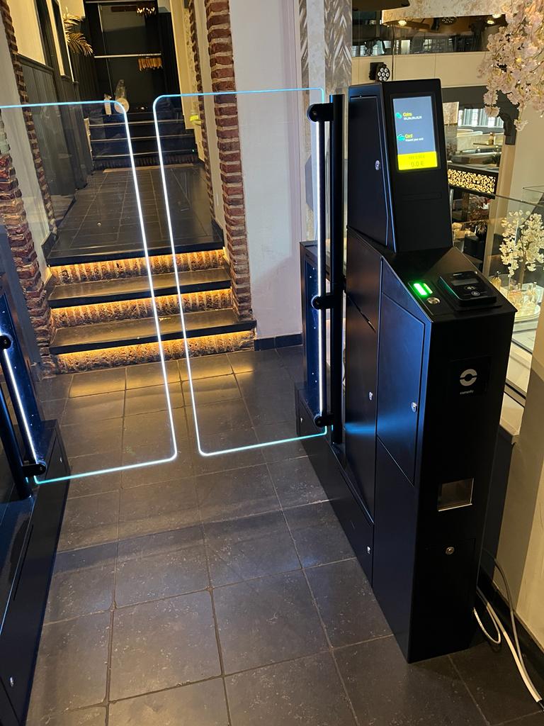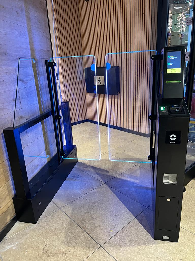 Deze toiletpoort is uitgevoerd in RVS standaard zwart met verlichting in de zwenkelementen. Een prachtige oplossing voor betaald toiletbezoek. Deze WC-poort is uitgerust met mogelijkheden voor cash betaling en cashless betaling. Tevens is een ticketprinter geïntegreerd voor de uitgifte van een WC-voucher voor korting op lokale aankopen. Het geheel is geschikt voor het gebruik door validen en minder validen (rolstoelen / rollators / kinderwagens / buggy’s etc).