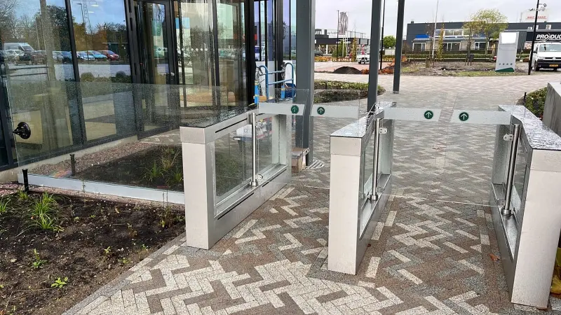 Omdat er naast normaal verkeer ook fietsverkeer van de entree gebruik maakt is gekozen voor fietssluizen voor buiten. Het toegepaste type personensluis met fietsdetectie functie is de EasyGate SPT-Outdoor.