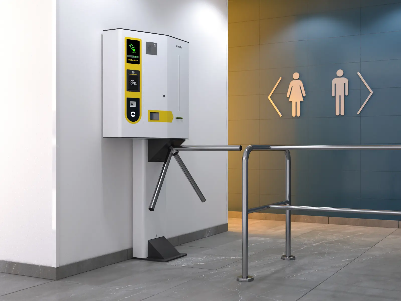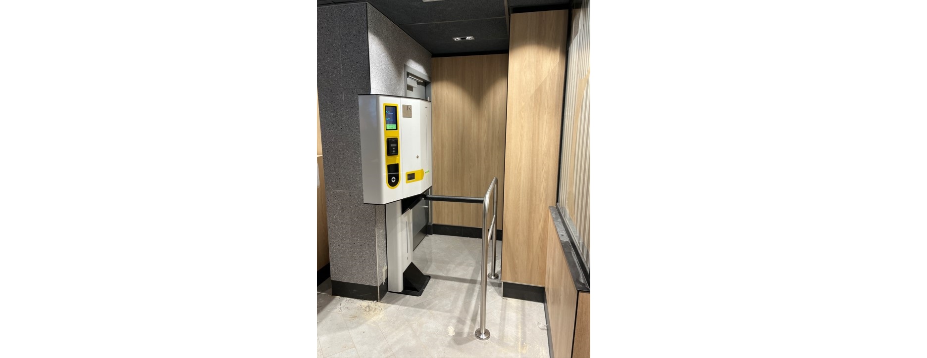 De toegang tot de toiletgroep van een bekend fastfood restaurant in Amsterdam is voorzien van een BAR SPA toiletbetaalsysteem. Gekozen is voor het kiosk-model.